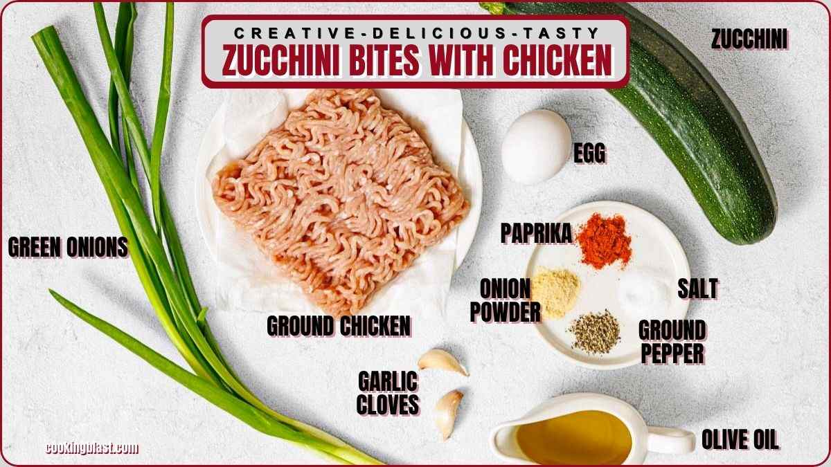 - Gather ground chicken, shredded zucchini, egg, green onions, garlic, spices, and olive oil so everything is within reach before cooking.