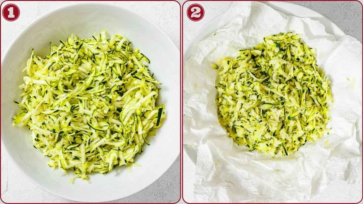 Shred the zucchini and squeeze out the extra liquid using paper towels or a clean cloth. This ensures the fritters will hold together while cooking. Removing excess moisture prevents them from becoming soggy.
