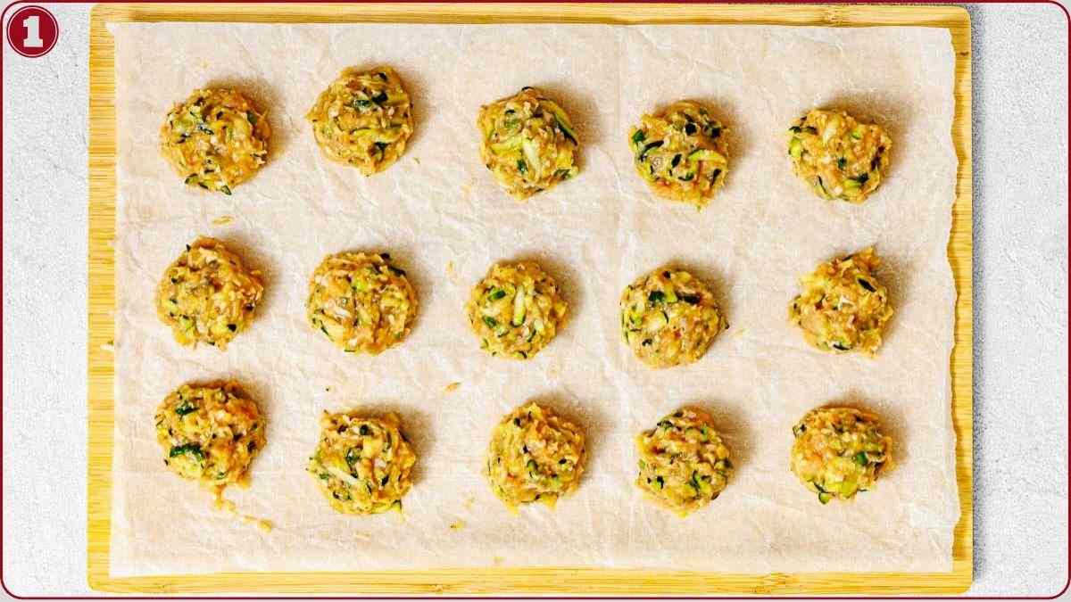 Scoop the mixture into small portions and roll into 1½-inch balls. Heat olive oil in a skillet over medium heat and arrange the zucchini bites without crowding the pan. Cook each side for 3–4 minutes until golden brown and fully cooked through.