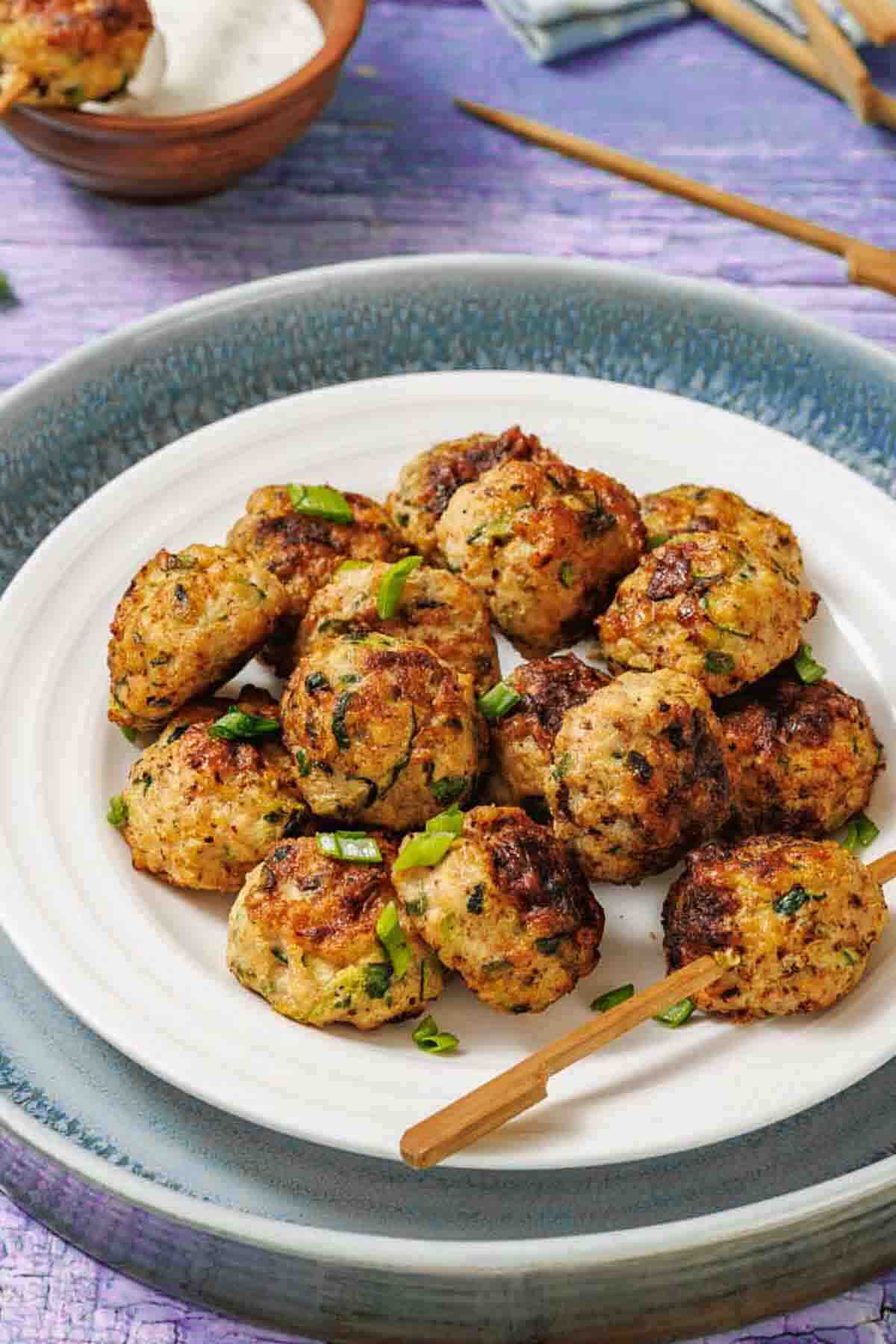 - Mix the ground chicken, zucchini, egg, green onions, garlic, and seasonings in a bowl until evenly combined and smooth.